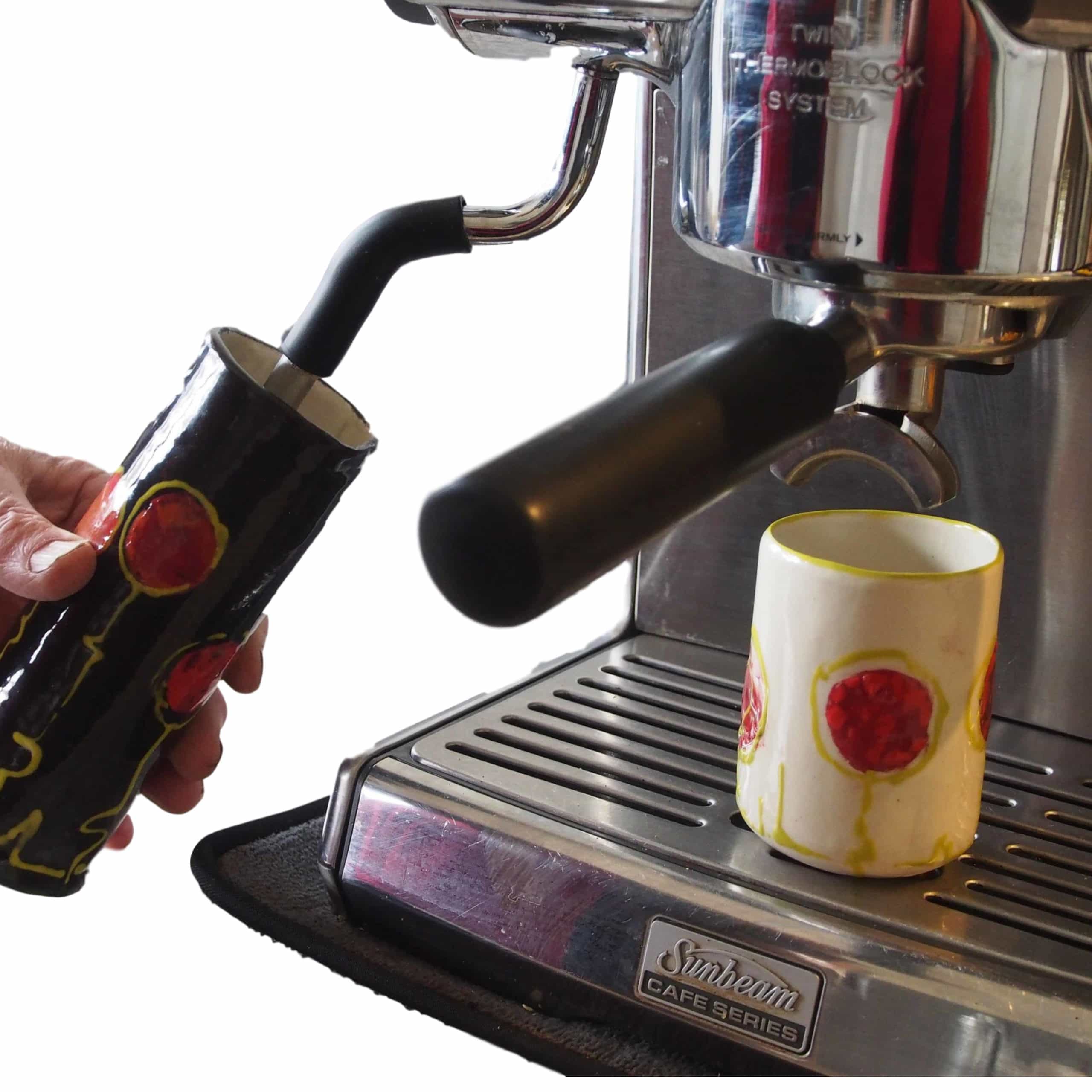 Starting with something to contain and enjoy the freshly extracted brew – we found most typical cups are too big and encourage dilution of the fresh flavour, or having too much milk. Some glass coffee cups, while the size was good get cold far to quickly, forcing the coffee connosuer to scoff down their cup quickly or else suffer a lukewarm cuppa.