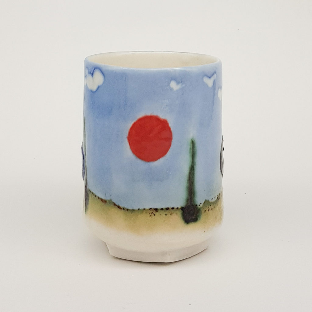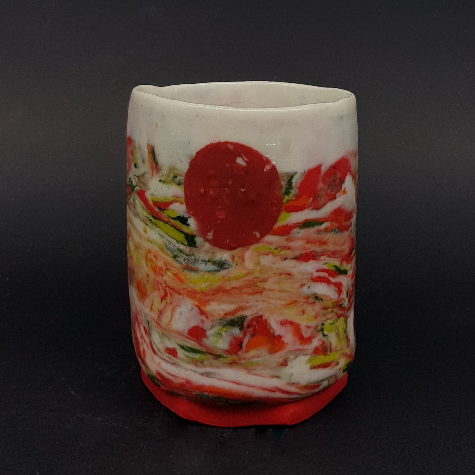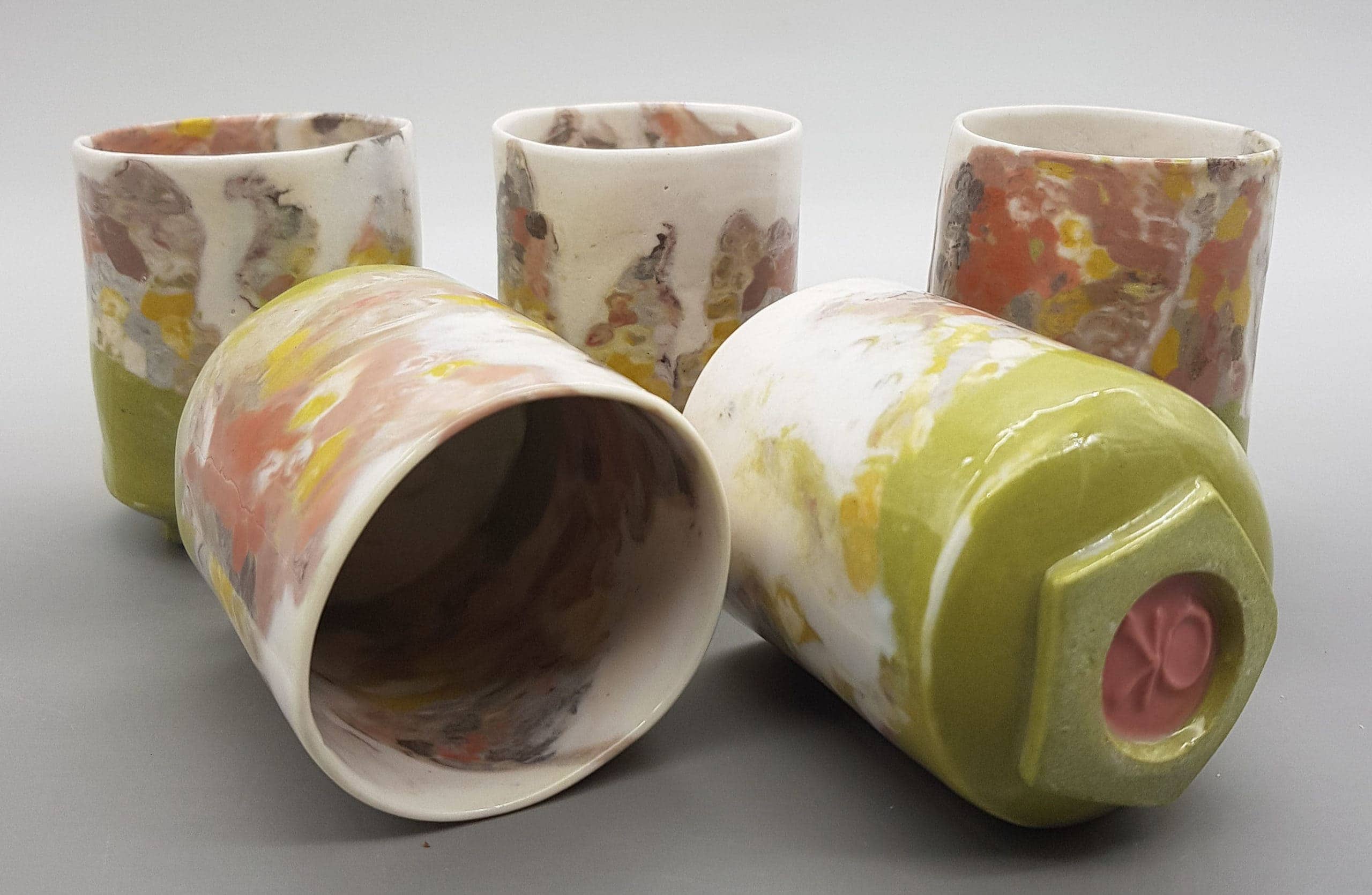 Many of my yunomi have a surprise in the foot. I often create a burst of colour only visible when washing up or in the dishwasher. It is a small reward for the chore person.